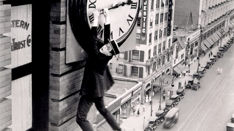 Harold Lloyd en el ascenso al reloj (El hombre mosca, 1923)